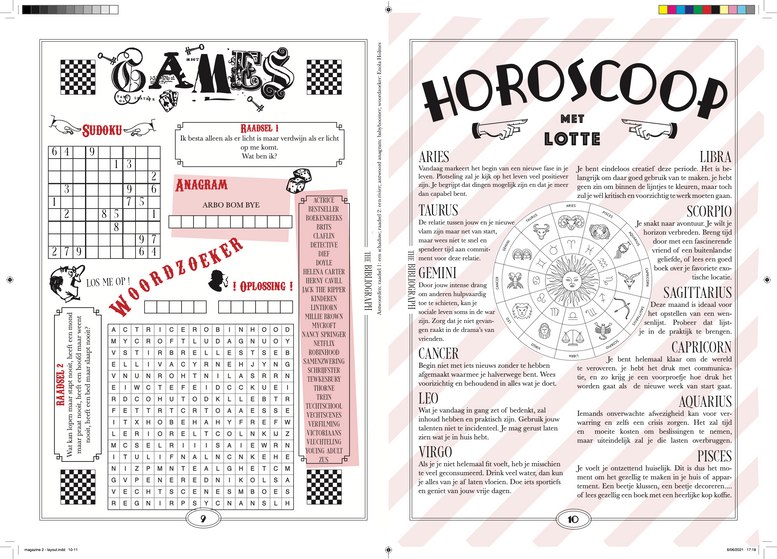 'The Bibliograph' is een magazine dat ik maakte voor het keuzevak Layout in het derde jaar journalistiek. Adobe InDesign is in de periode van productie mijn beste vriend geworden en heeft me toegestaan mijn creativiteit op 12 pagina's vol literair nieuws te uiten. Ik ben hier dus ook ontzettend trots op.
